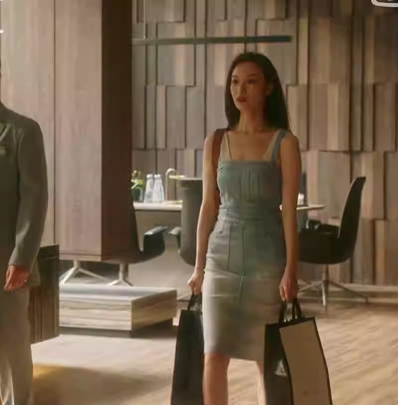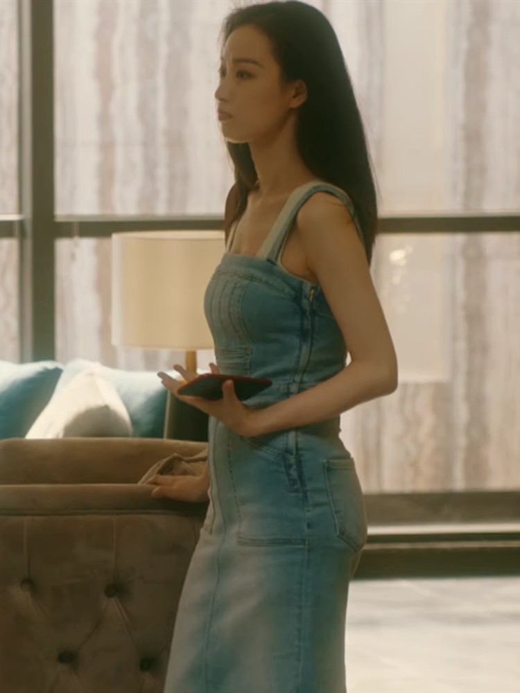 倪妮同款连衣裙春秋抹胸朱锁锁背带小个子夏明星2024牛仔吊带裙女