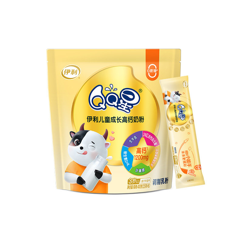 伊利QQ星儿童成长高钙牛奶400g袋装3-12岁学生营养早餐高钙牛奶粉