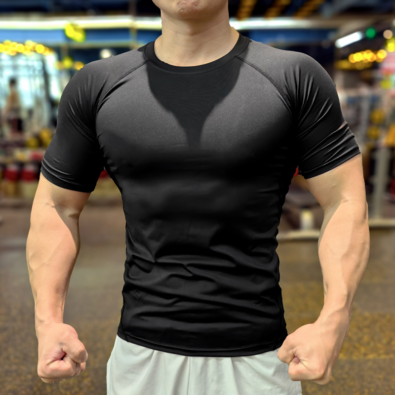 紧身衣男运动短袖T恤夏季高弹力速干透气纯色圆领跑步健身训练服