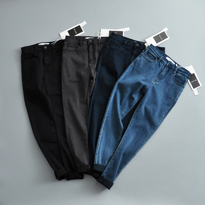 2025秋季新款高弹力裁边小脚长裤高腰修身显瘦超弹柔软牛仔裤