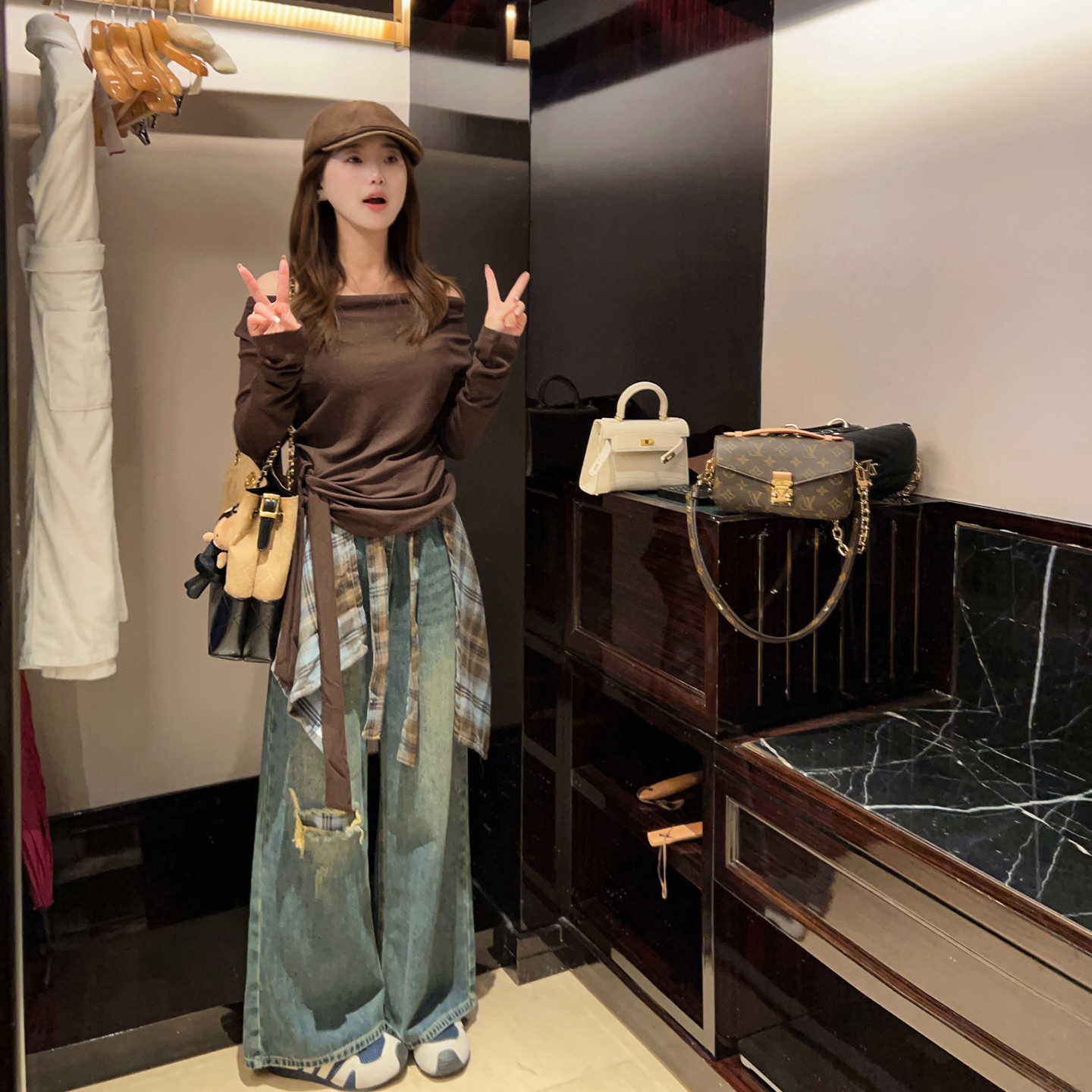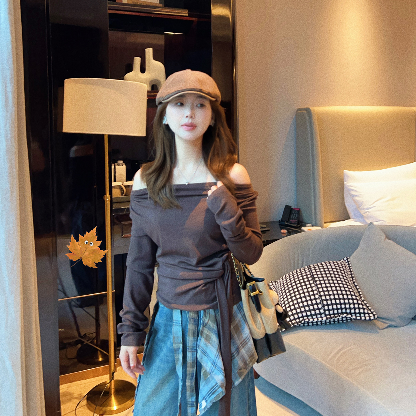 小小家 小个子小码高弹长袖荡领打底衫软糯修身绑带T恤150