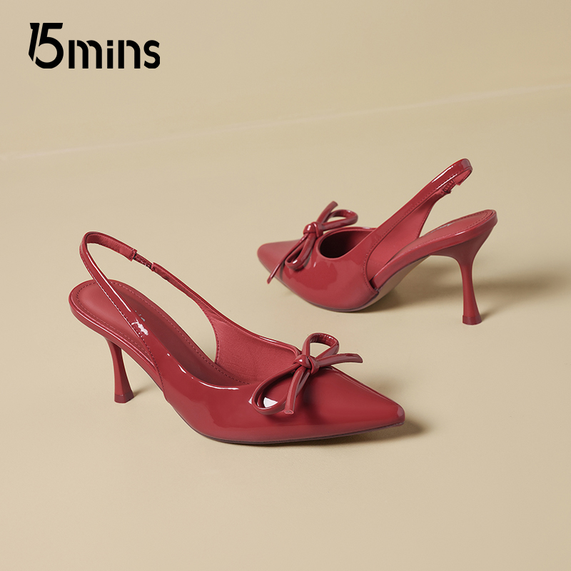 15mins红色高跟鞋女2025夏季新款配裙子细跟尖头单鞋气质时装凉鞋