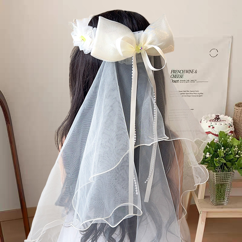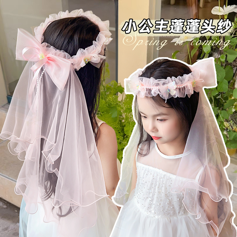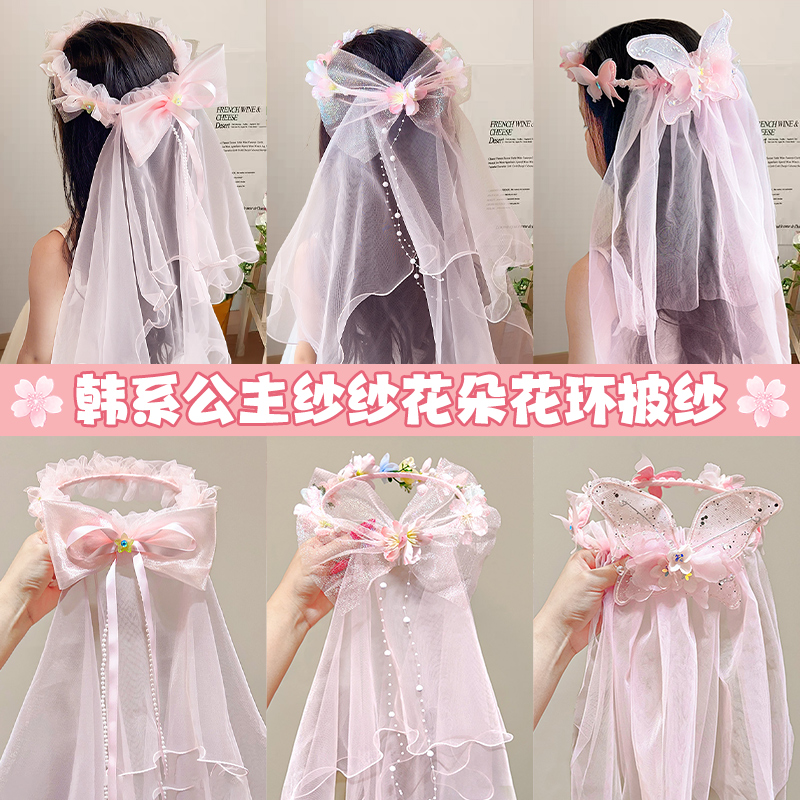 儿童花环头箍公主头纱女孩生日拍照发箍发饰女童头纱花童头饰新款