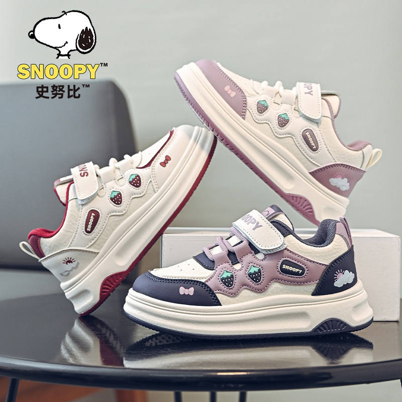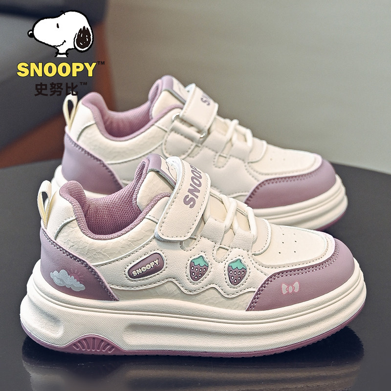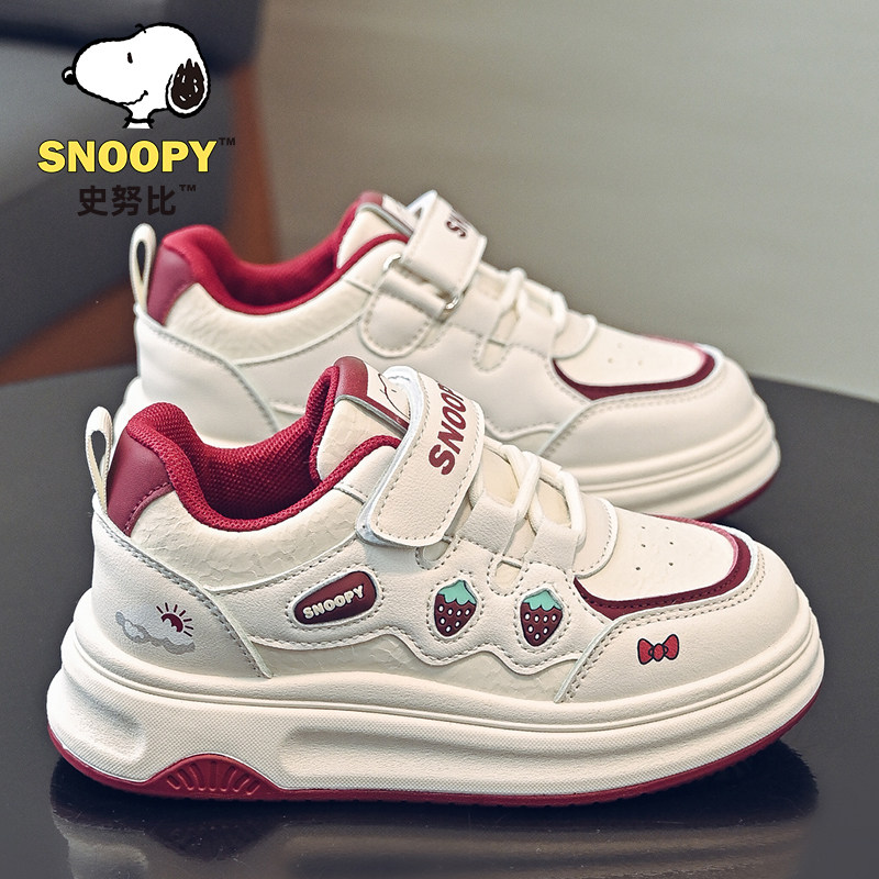 史努比儿童运动鞋新年2026春秋季百搭学生中大童皮面防水女童板鞋