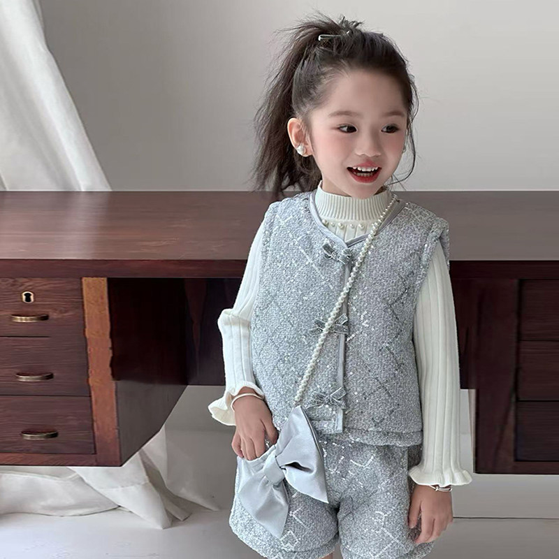 女童新年套装2025冬季新款女宝宝洋气时髦法式小香风套裙过年衣服