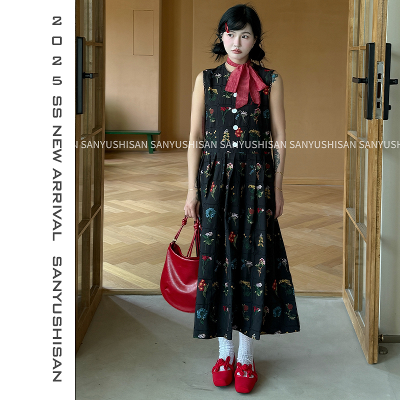 三与十三|莫奈假期|法式高级感小众无袖背心连衣裙