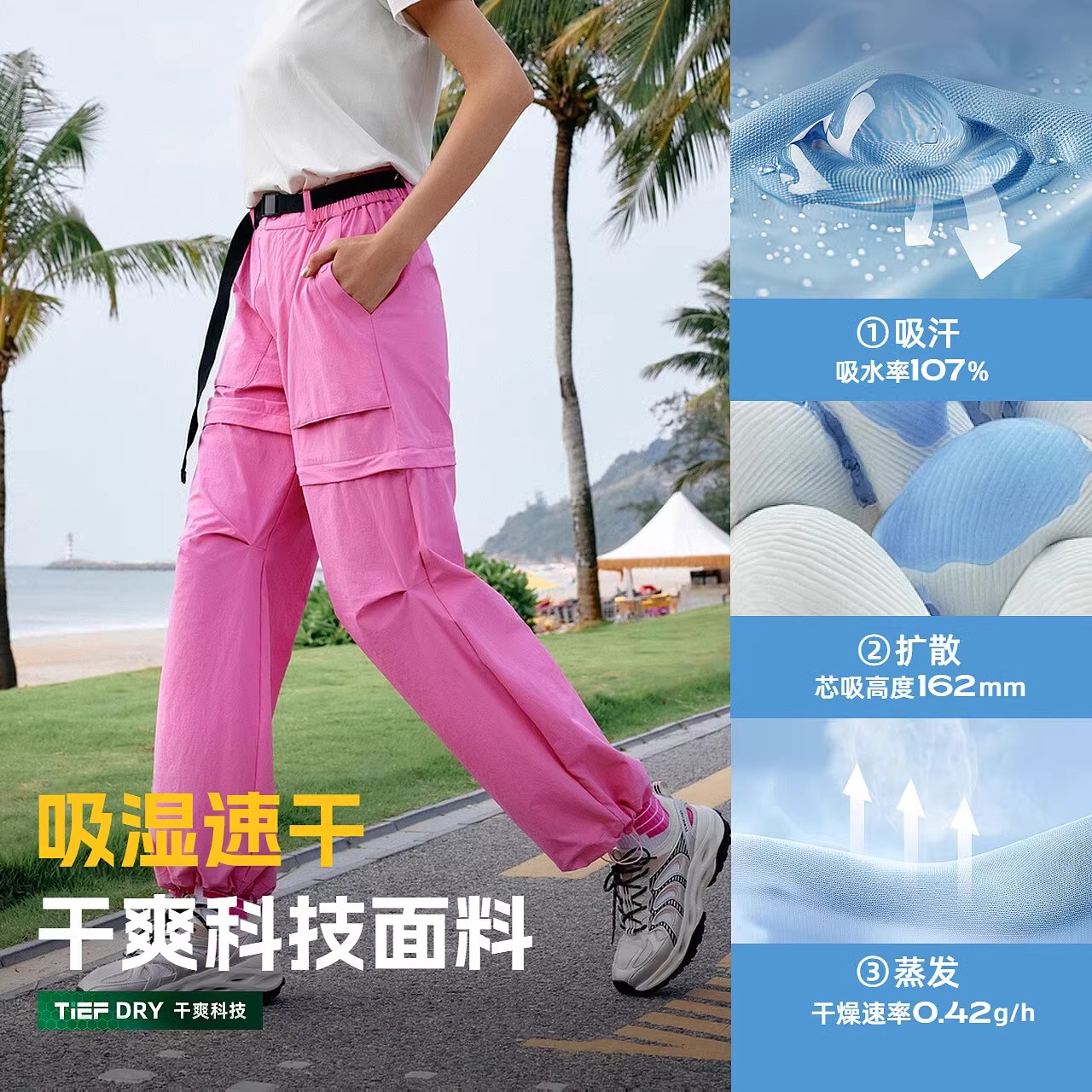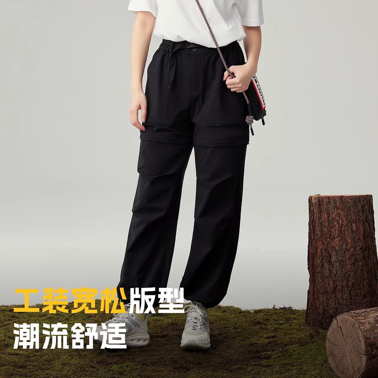 探路者速干裤女夏季户外吸汗速干宽松可拆卸两截裤工装长裤男短裤