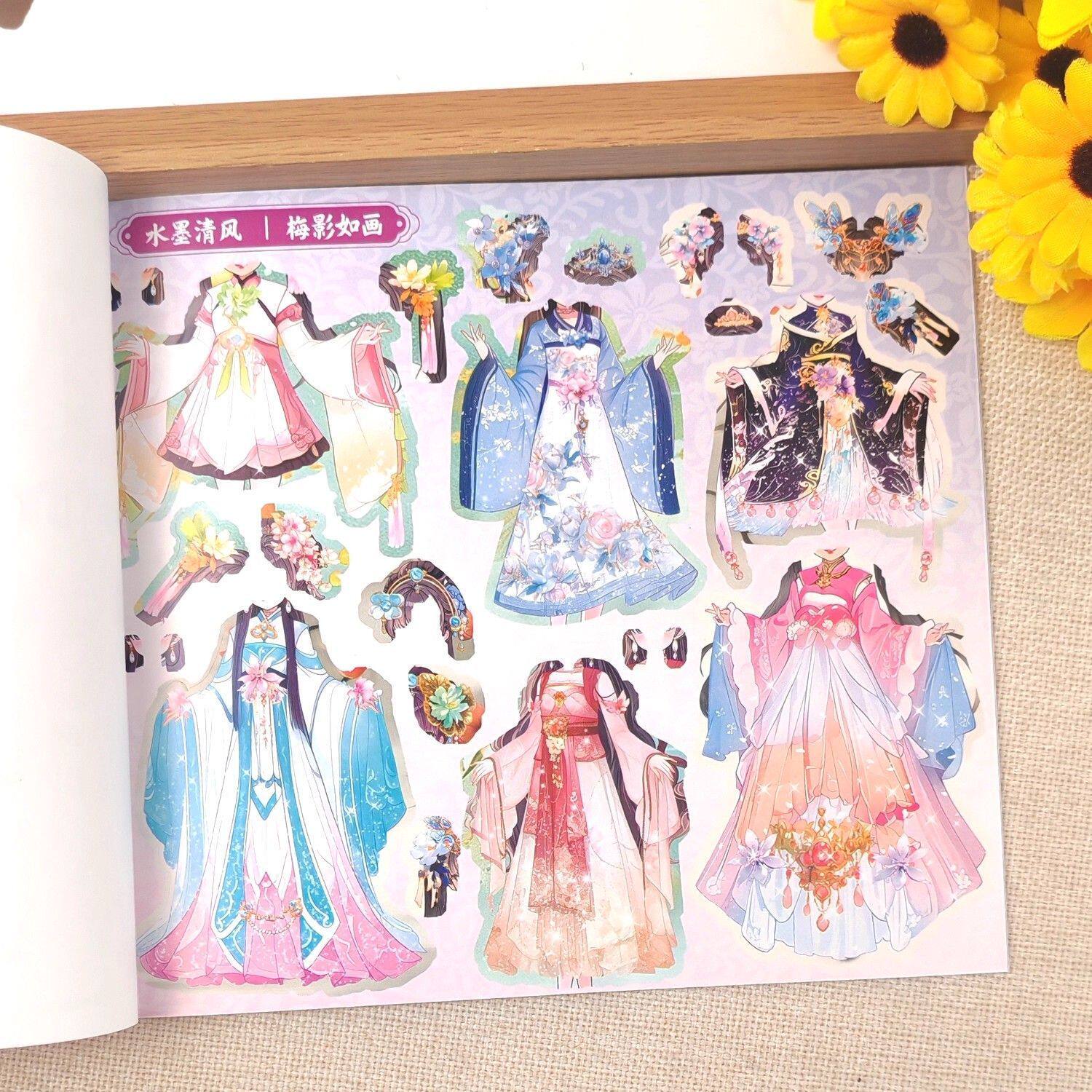 4册中国古风美少女换装贴纸-102幅造型+23款妆容培养动手能力