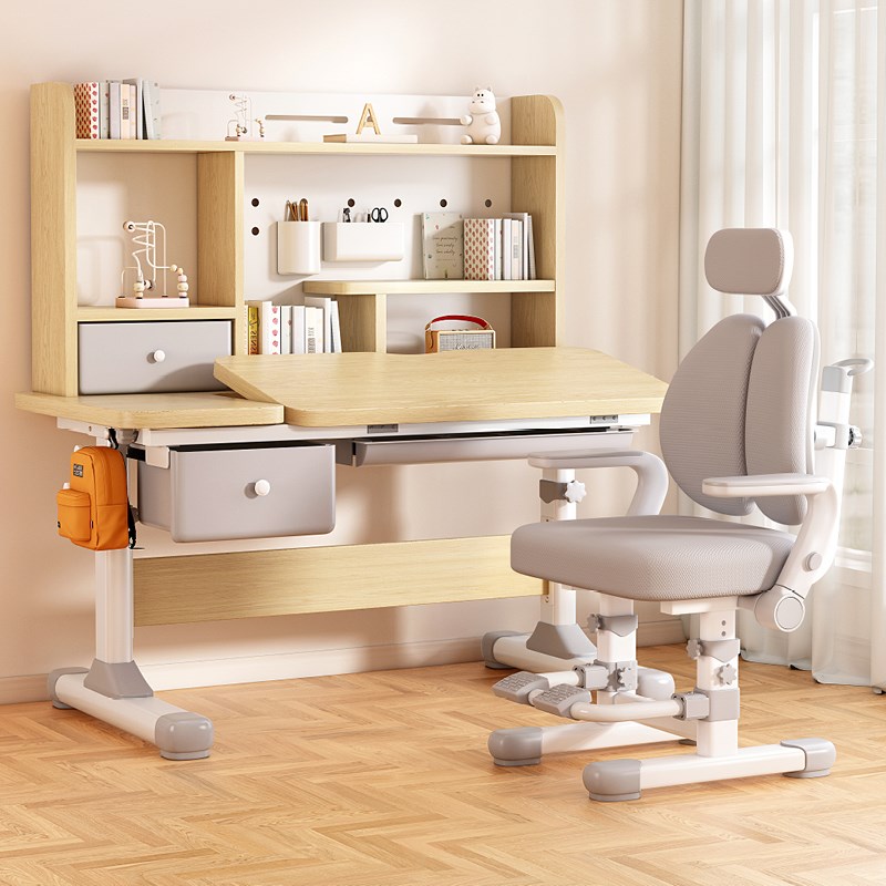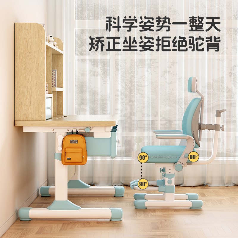 实木儿童学习桌书桌书柜一体组合写字桌可升降桌椅套装家用课桌子