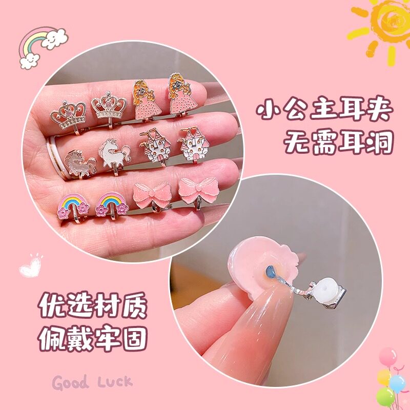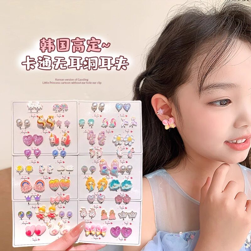 美人鱼耳夹女童无耳洞耳钉花朵爱心防痛耳坠儿童珍珠耳环卡通配饰