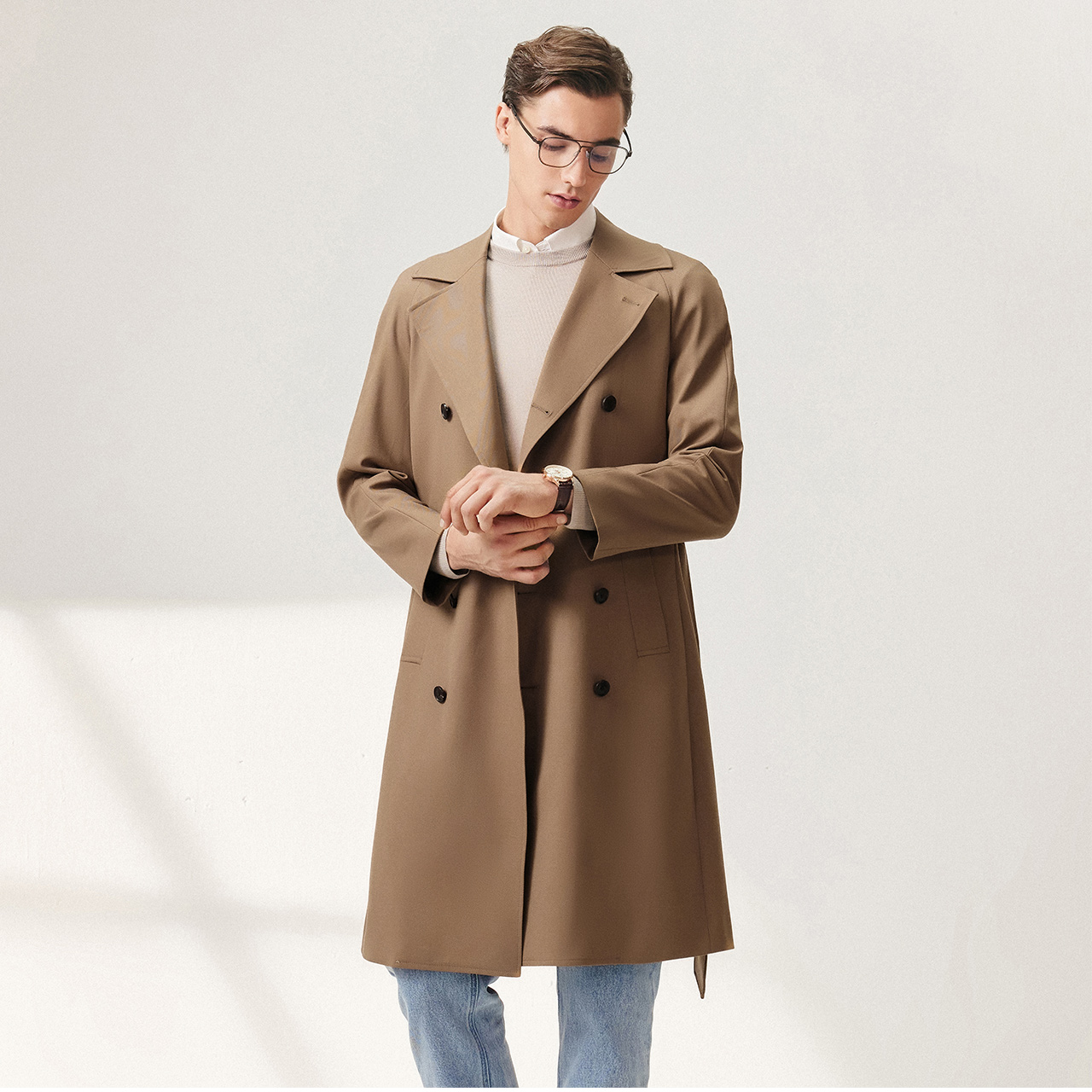 【意大利进口Tollegno】柏品羊毛战壕风衣男秋新品商务中长款外套