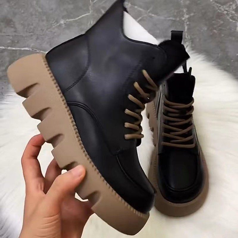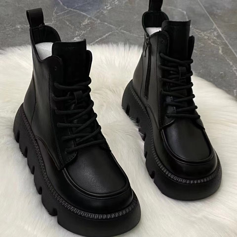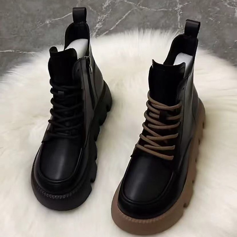 品牌真皮马丁靴女英伦风2023新款春秋单靴百搭松糕底圆头加绒短靴
