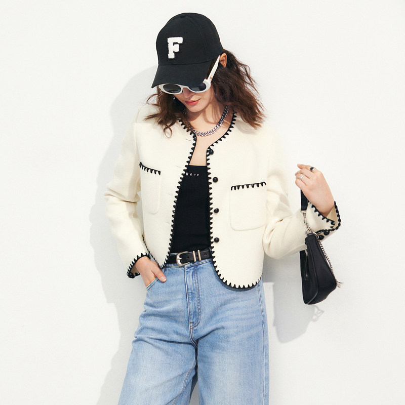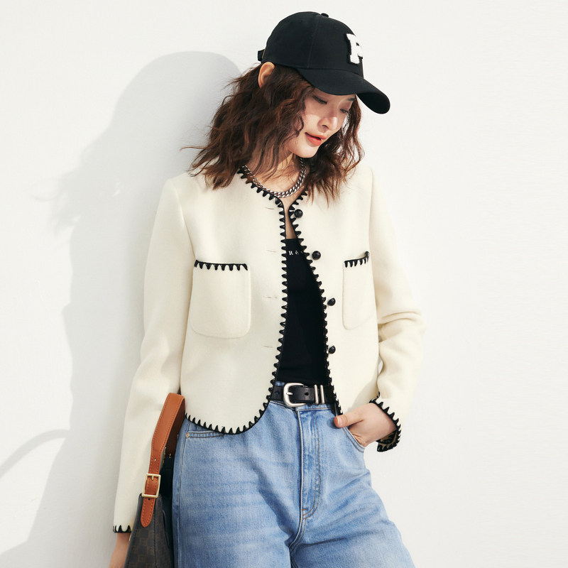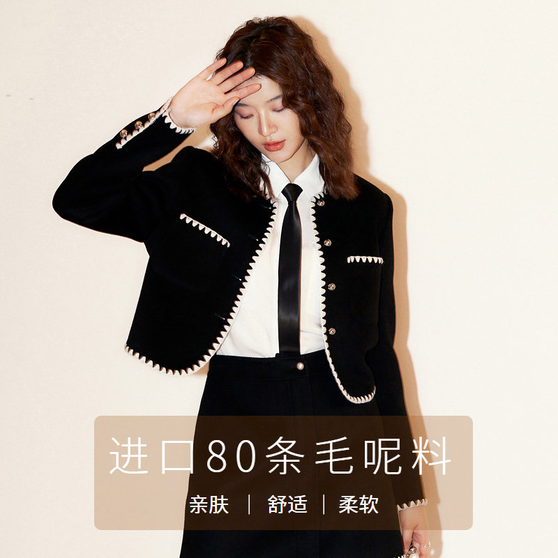 【100绵羊毛】仿佛短外套女冬季新款撞色短款气质毛呢小香风外套