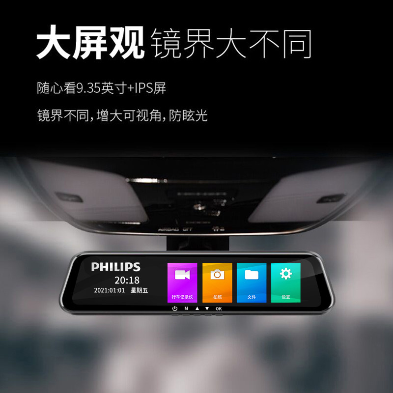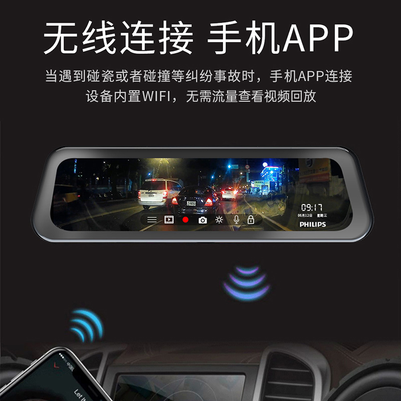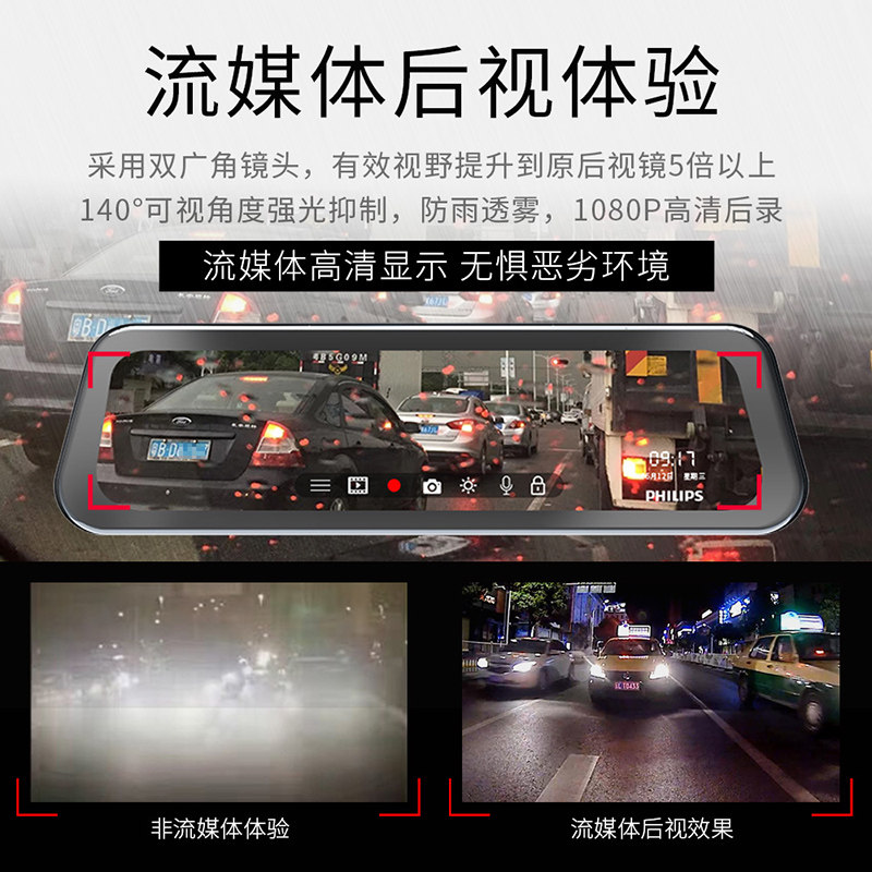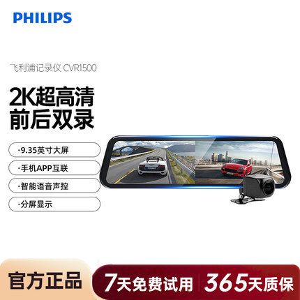 飞利浦行车记录仪CVR1500高清前后双录流媒体星光夜视加强后视镜