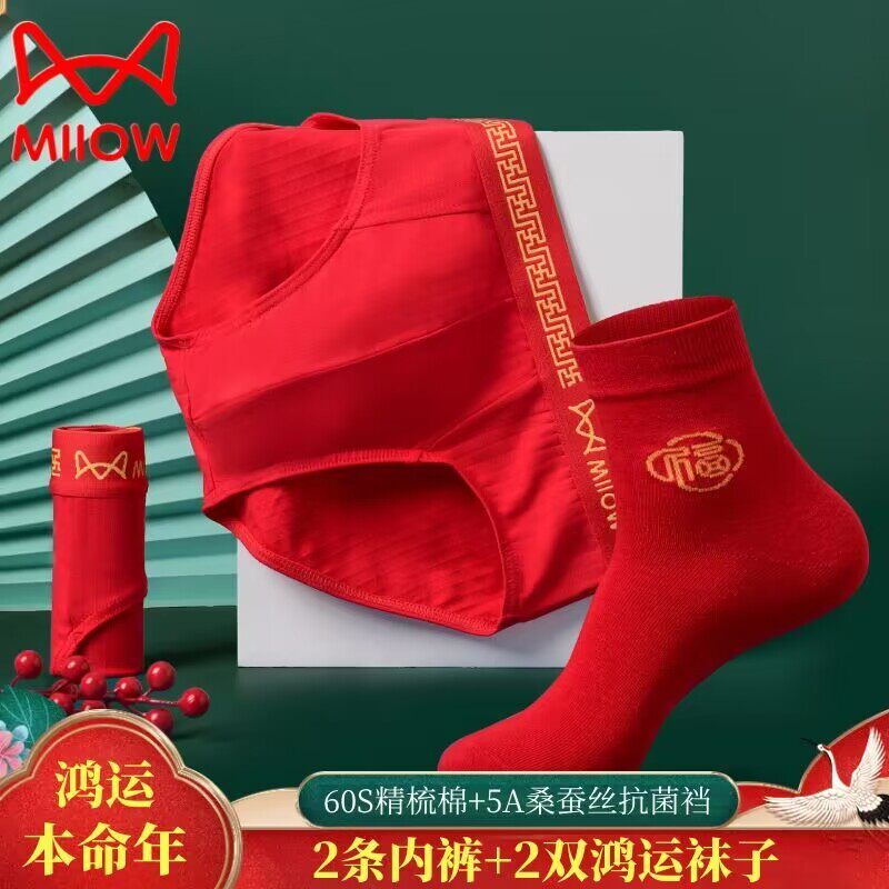 透气本命年红色纯棉抗菌三角裤运动短裤男生款头猫人男士内裤结婚