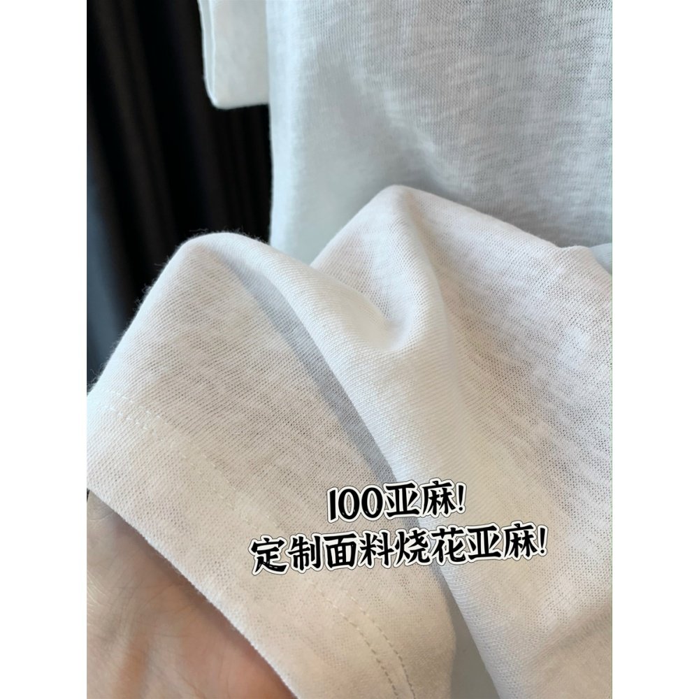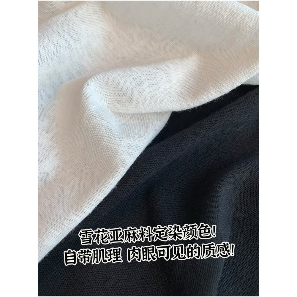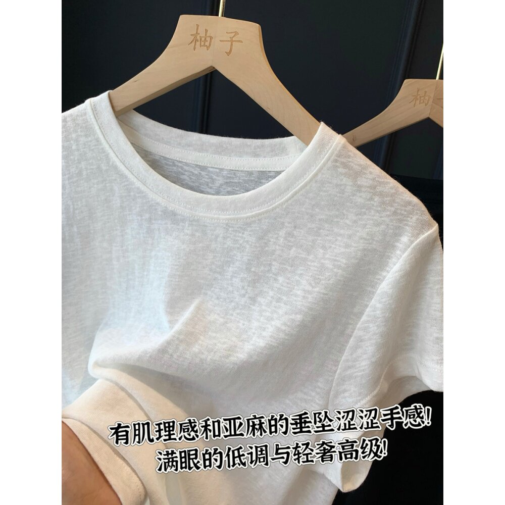 葡萄牙亚麻!炒好穿舒适纯色T恤!肌理感百搭宽松圆领短袖凉爽女