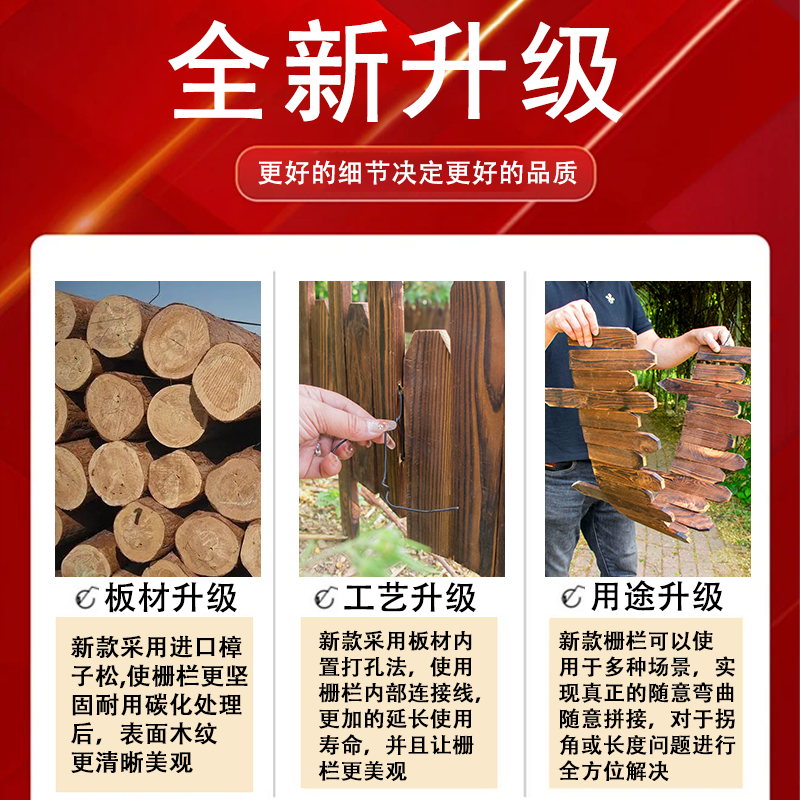 防腐木栅栏插地花园围栏户外庭院花池菜园花坛挡土小篱笆院子装饰