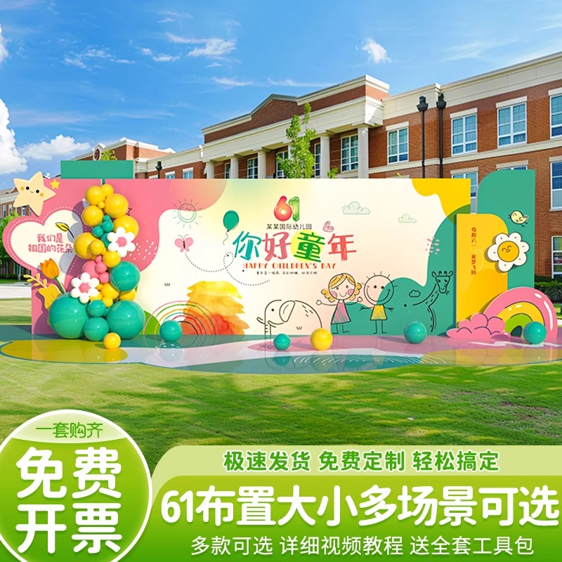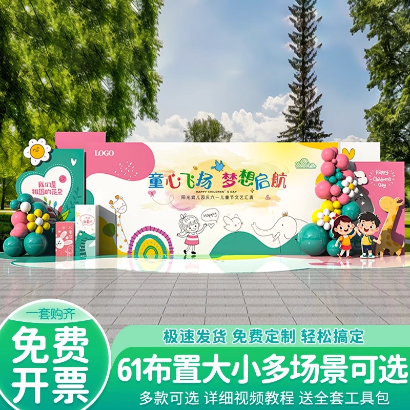 毕业升学气球装饰布置幼儿园led舞台活动场景氛围KT展板背景墙