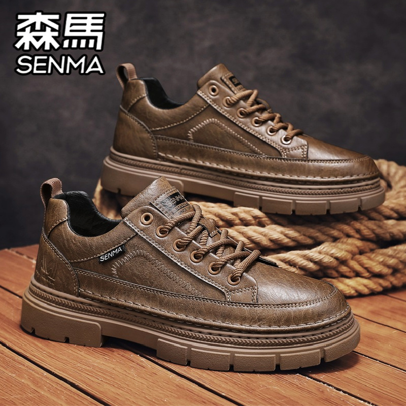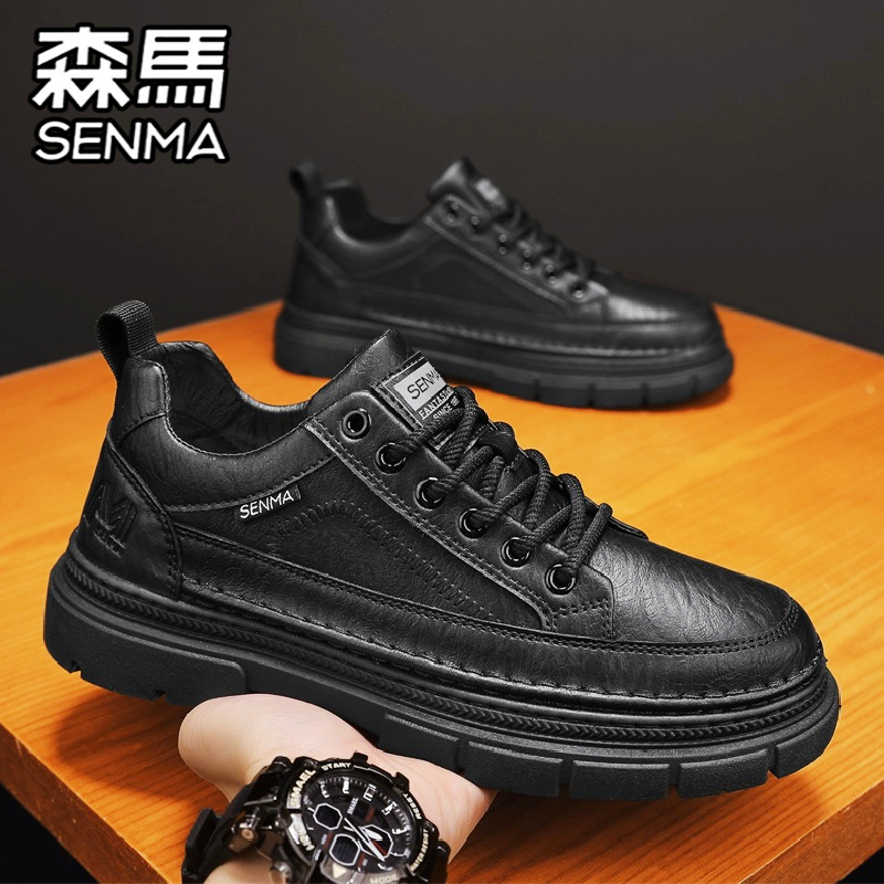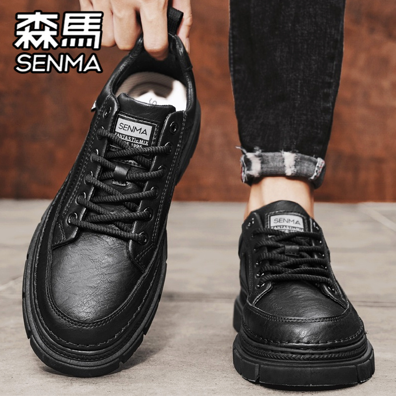 森马男鞋秋季皮面防水上班工作潮鞋男士皮鞋休闲软底增高运动板鞋