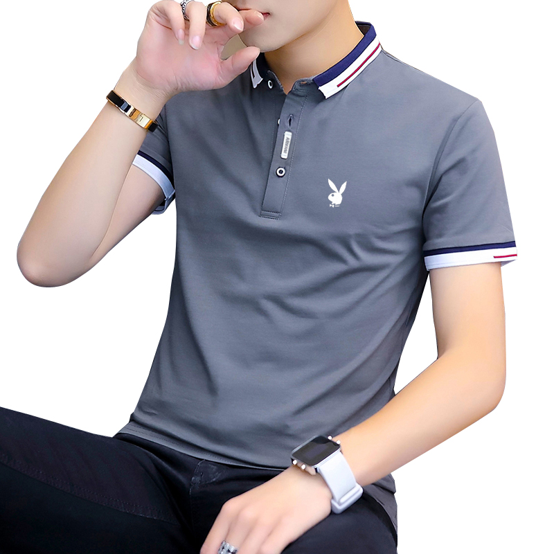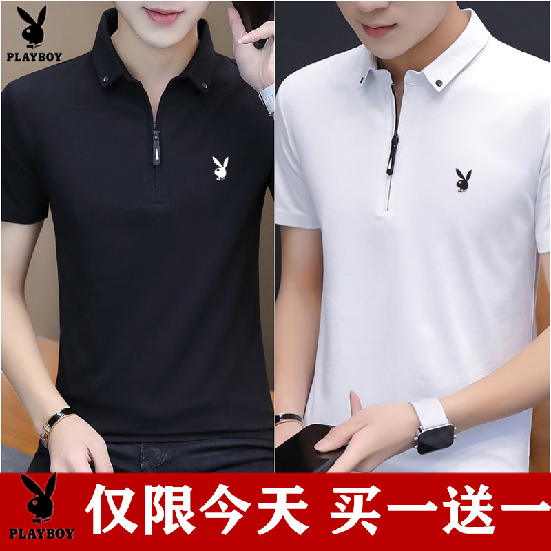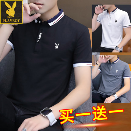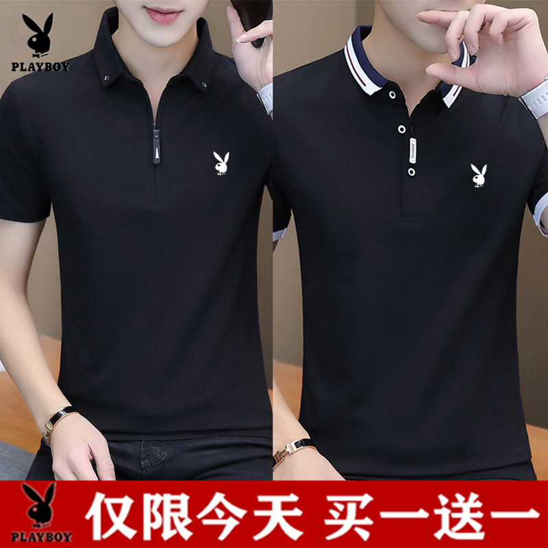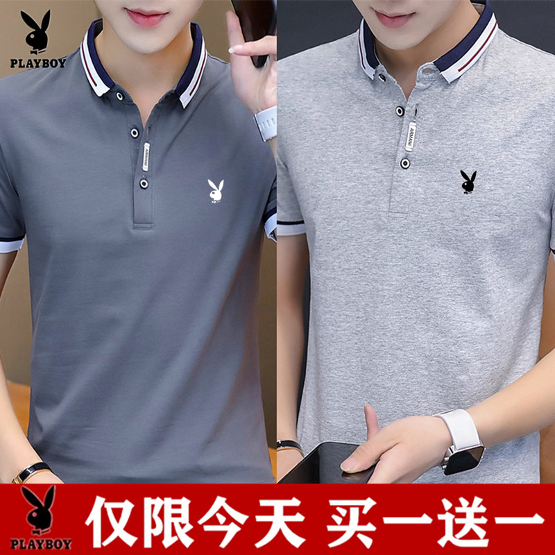 花花公子纯棉短袖t恤男士夏季新款POLO衫半袖体恤翻领上衣打底衫