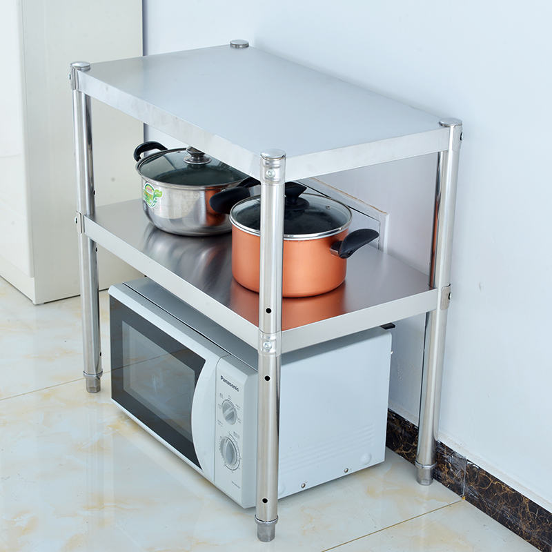 大尺寸厨房置物架落地2层加长不锈钢橱柜收N纳架微波炉架放锅架子