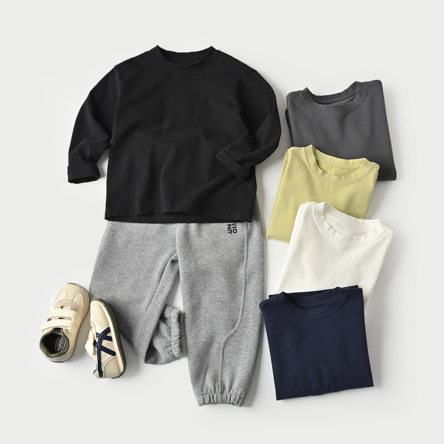 儿童圆领长袖棉T恤 男童女童基础打底衫 180码中大童 春秋款 童装