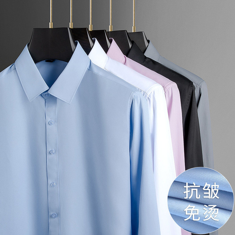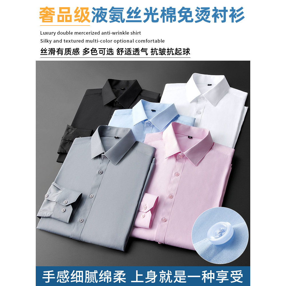 撤标撤柜!(L)男长袖液氨丝光棉抗皱免烫休闲商务修身薄款衬衫