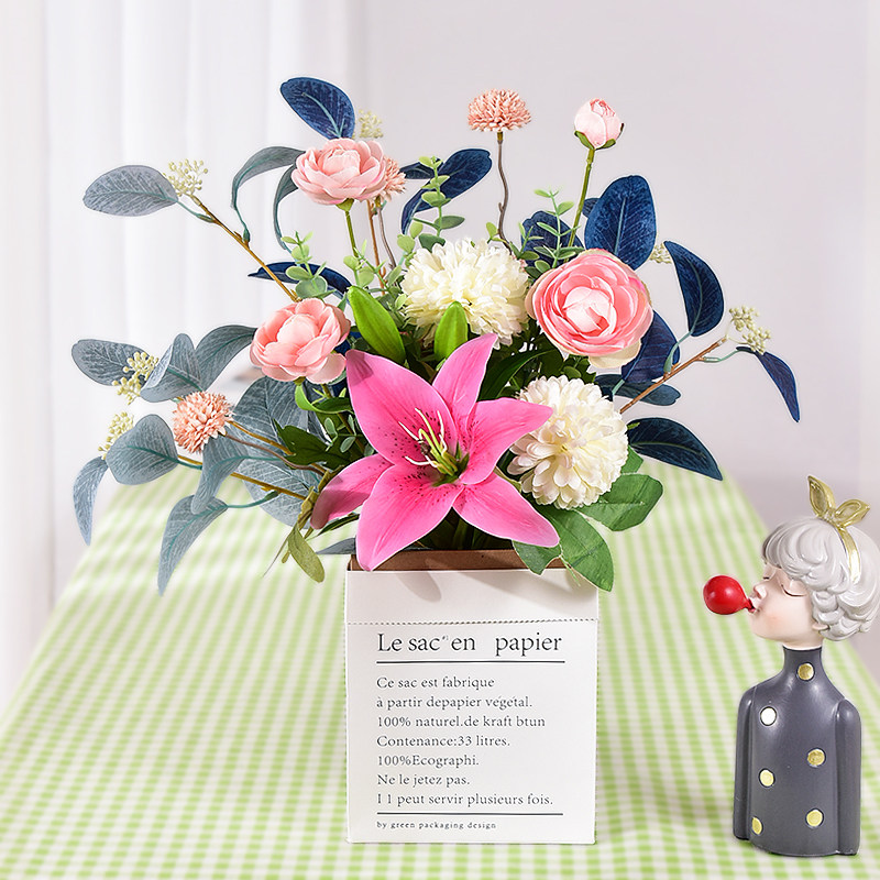 2025新款假花仿真花束高档客厅摆设室内茶几餐桌绢花盆栽装饰摆件