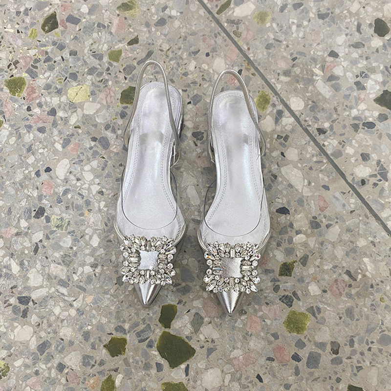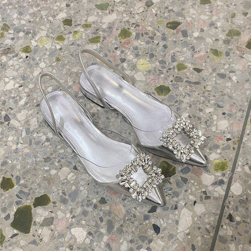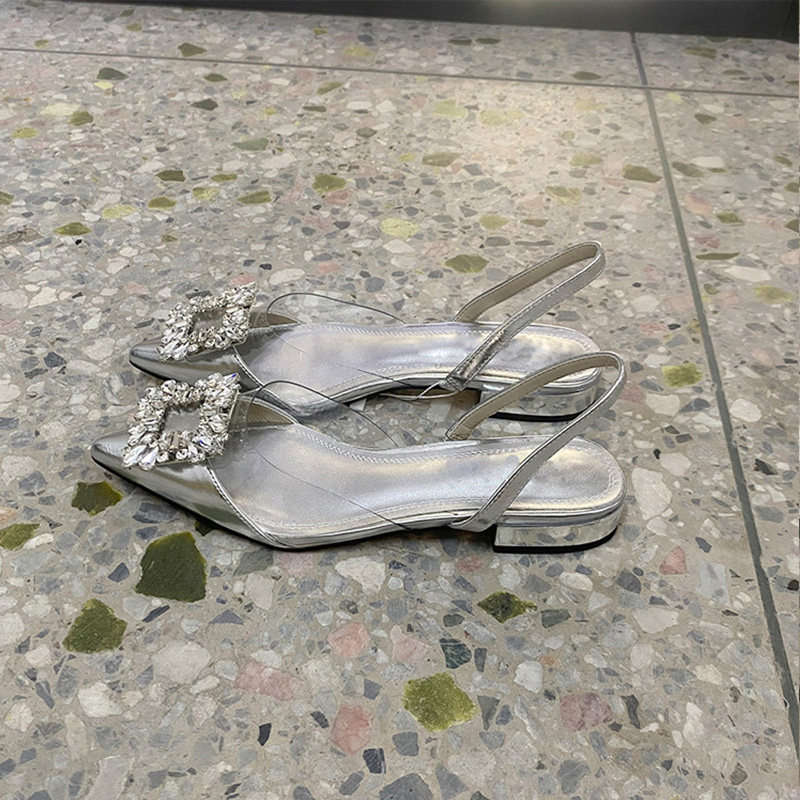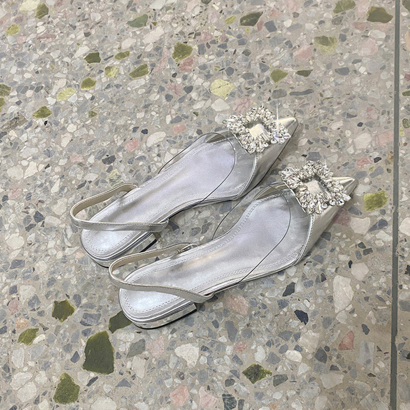 尖头浅口方扣水钻平跟低跟凉鞋女