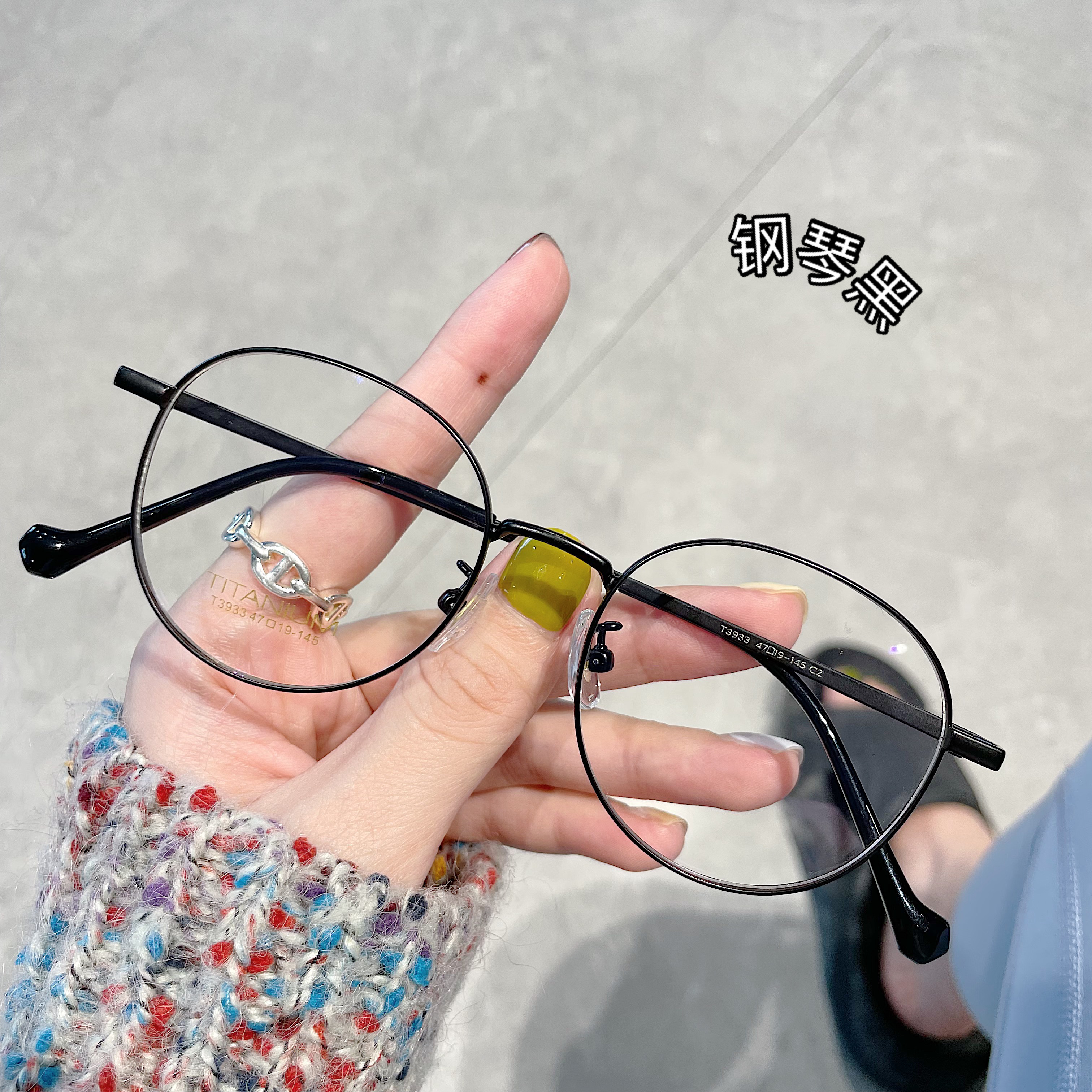 超轻钛架防蓝光近视眼镜女椭圆形韩版复古小红书同款眼镜框潮流男