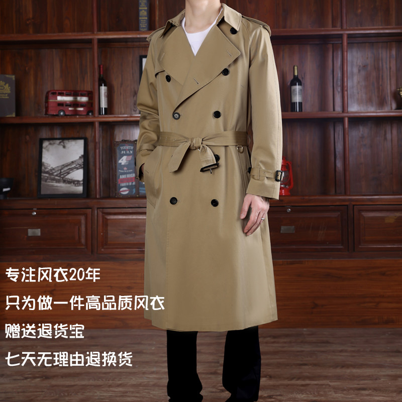 男装战壕风衣春秋冬双排扣插肩袖宽松中长款英伦抗皱防雨水大外套