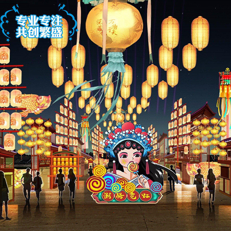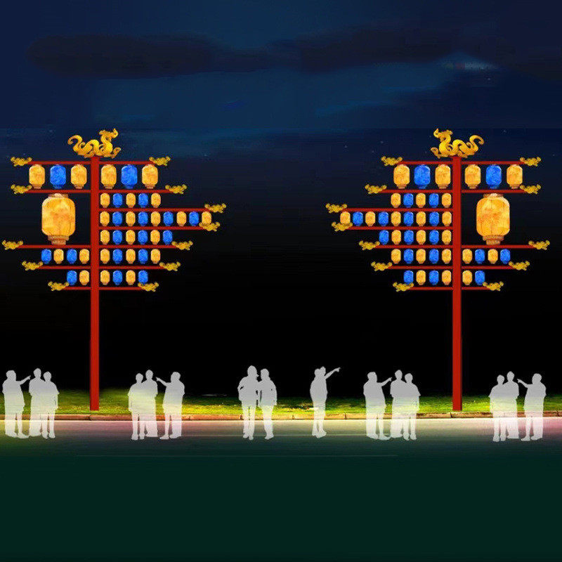 大唐不夜城文旅灯杆灯笼道路户外印画宫灯国潮景区led亮化灯笼