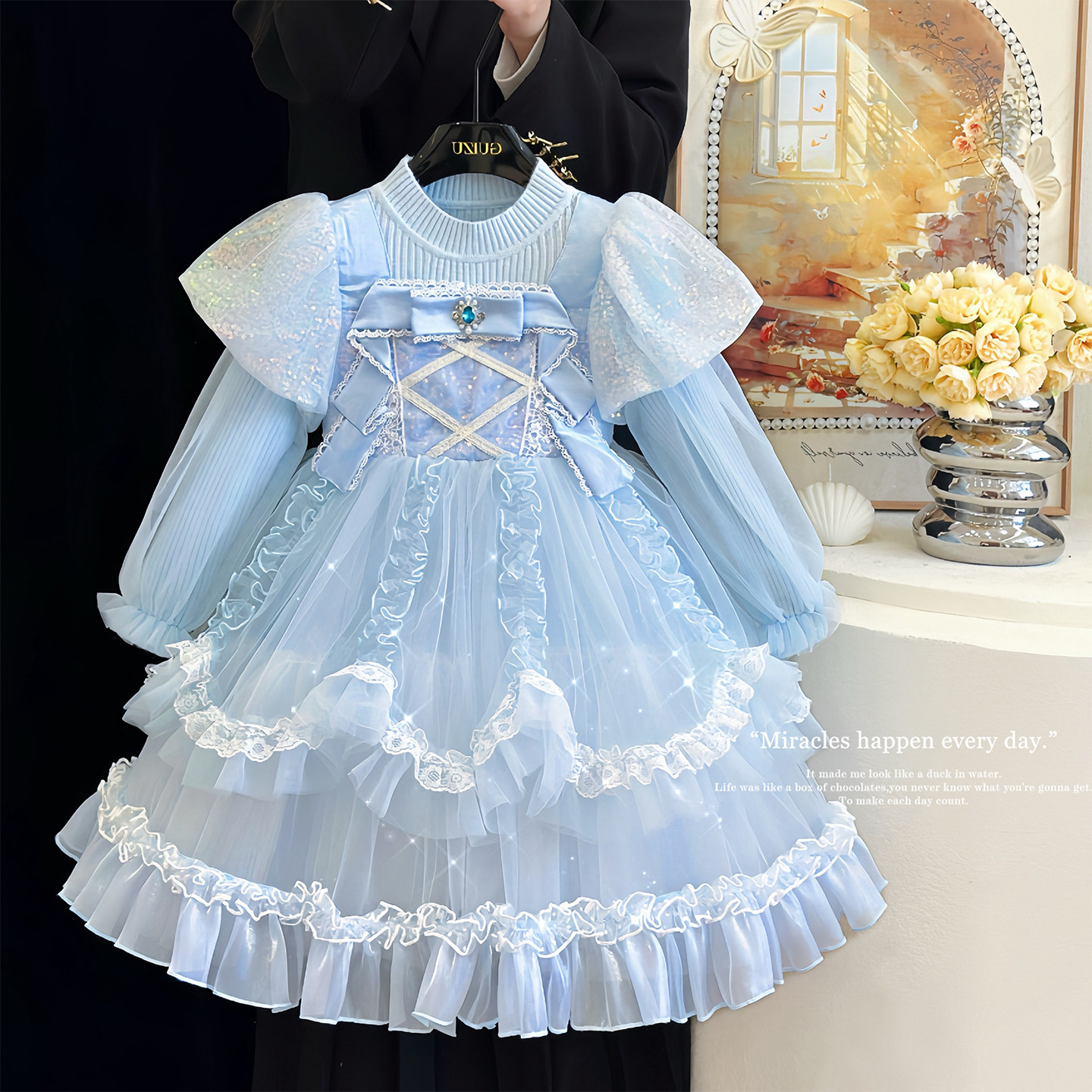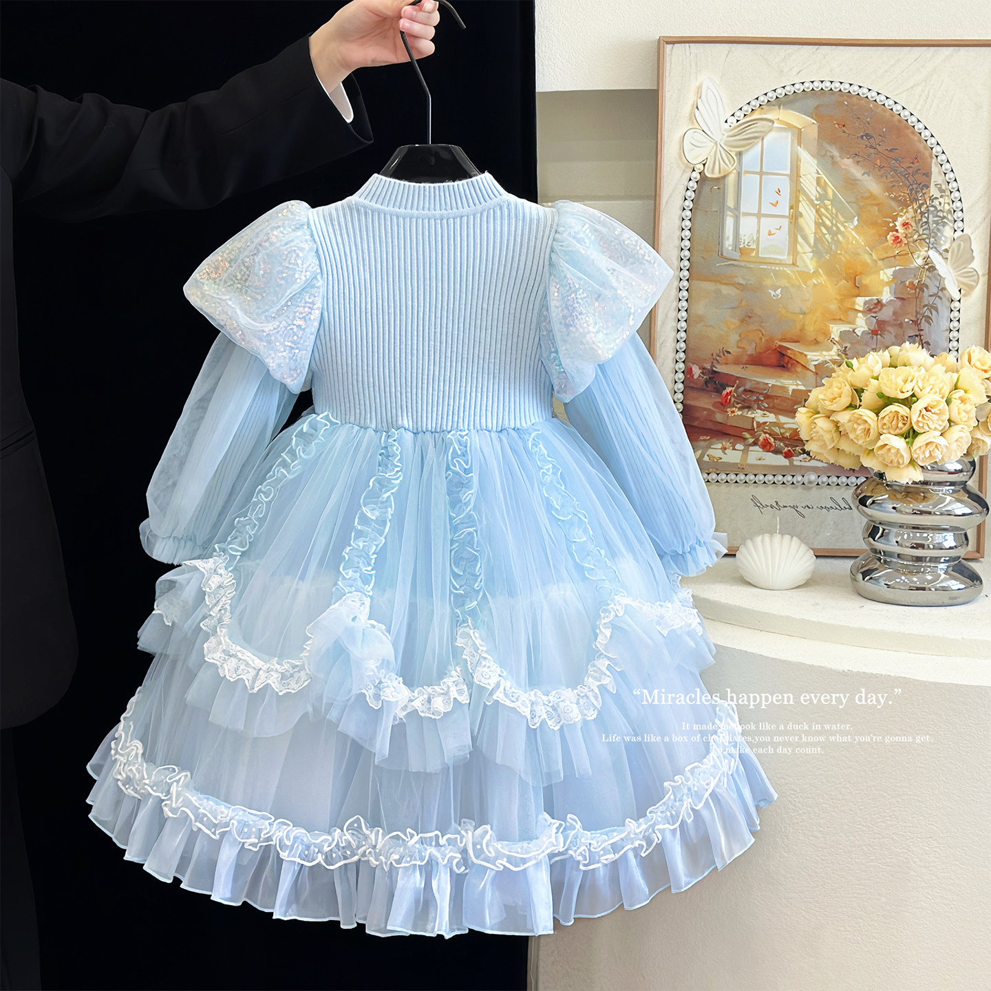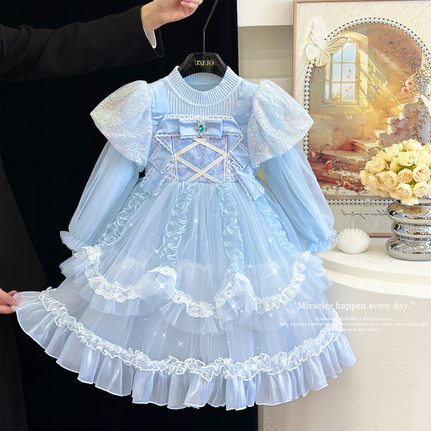 女童爱莎公主裙冬装洋气小女孩艾莎生日礼服裙冰雪奇缘毛衣连衣裙