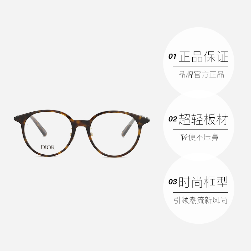 【自营】DIOR迪奥眼镜框女圆形玳瑁色近视光学镜男 MINI CD O R5F