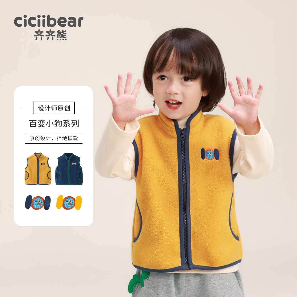 齐齐熊男童马甲春秋新款儿童摇粒绒坎肩婴儿保暖背心宝宝秋冬马夹