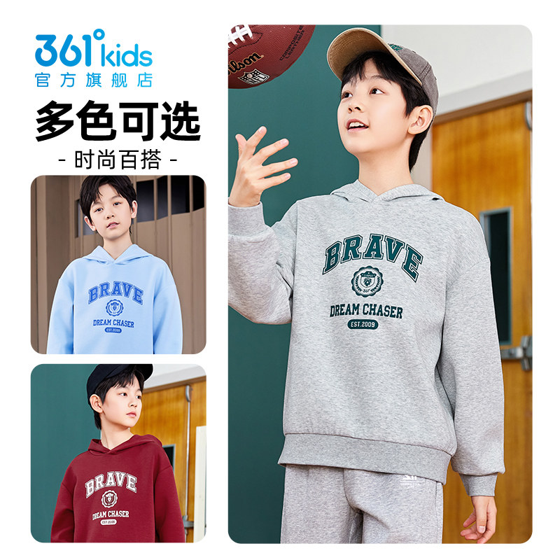 361°童装男童休闲连帽运动卫衣2025秋季新款百搭舒适中大童上衣