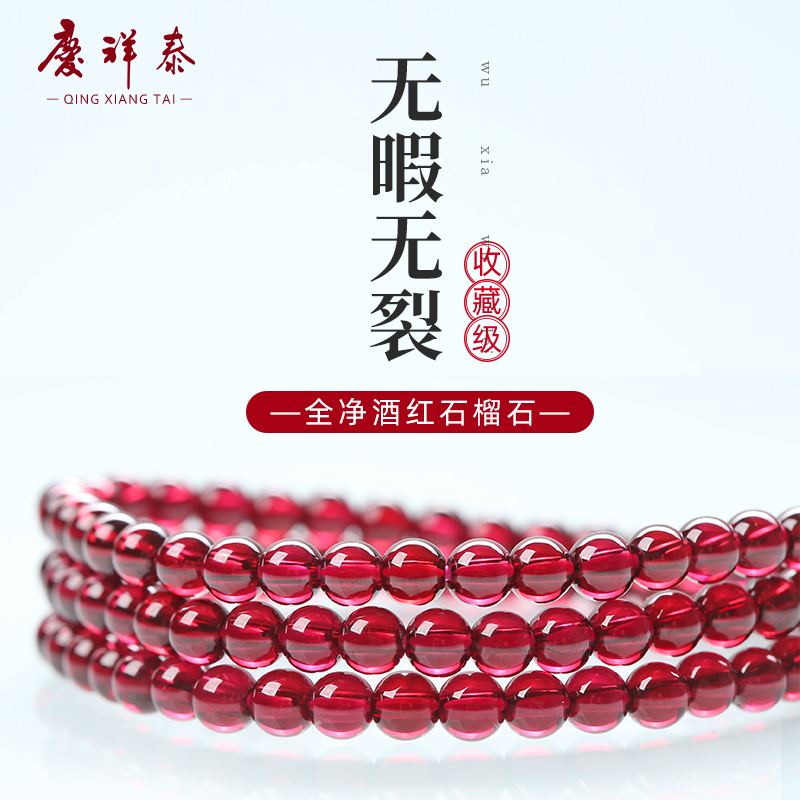 速发莫桑比克收藏净体 酒红石榴石手链单圈三圈手串纯珠子
