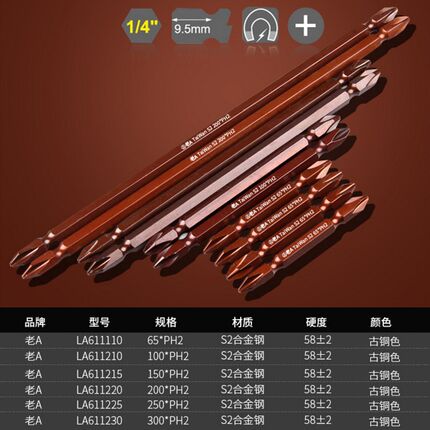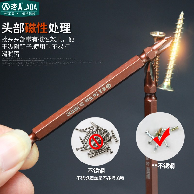 老A S2工业双头电钻批头 加长十字电动起子头 强磁风批头 流水线