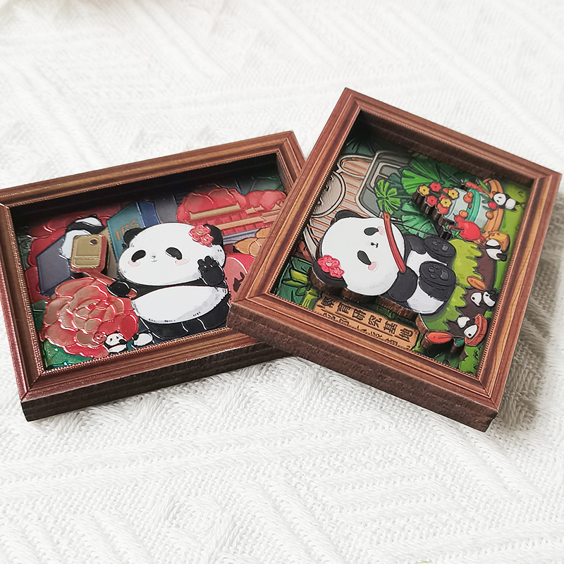 成都花花旅行相框冰箱贴多层木质银箔冰箱磁贴四川旅游纪念品礼物