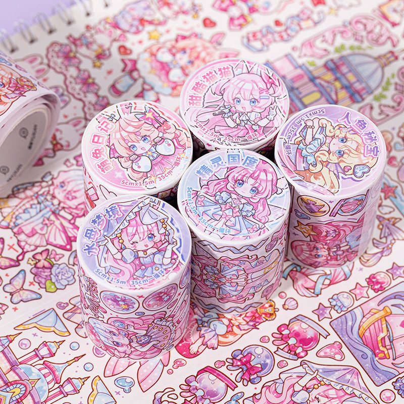 语闲贝拉甜糖歌谣和纸胶带ins风可爱萌宠人鱼公主手账diy素材贴纸