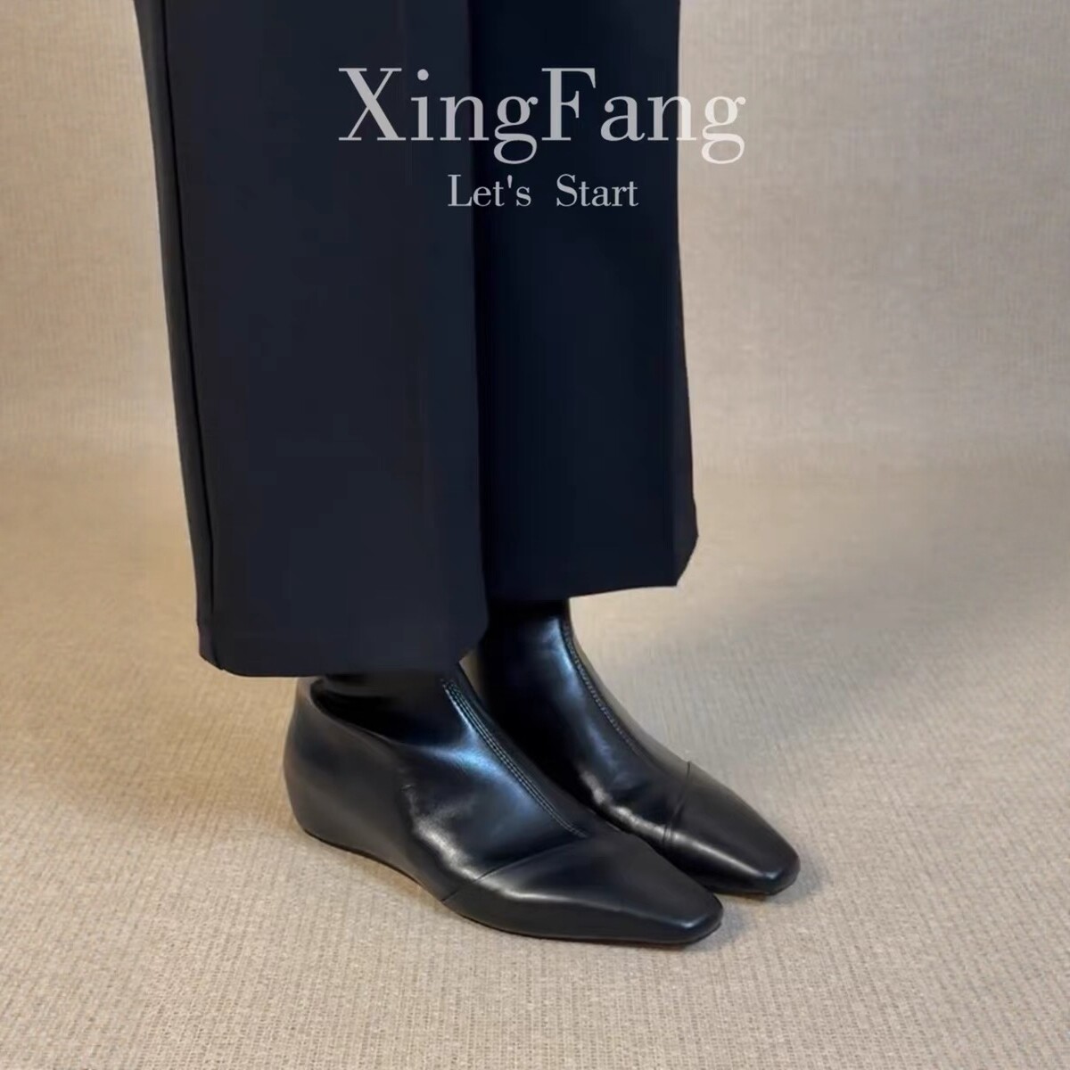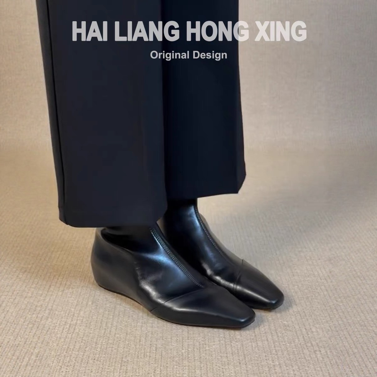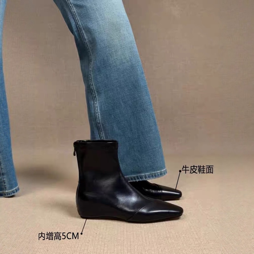 羊皮版~复古内增高短靴女秋冬新款气质百搭小方头裸靴弹力瘦瘦靴