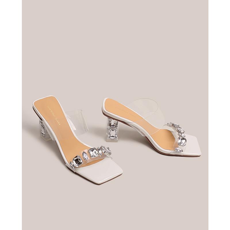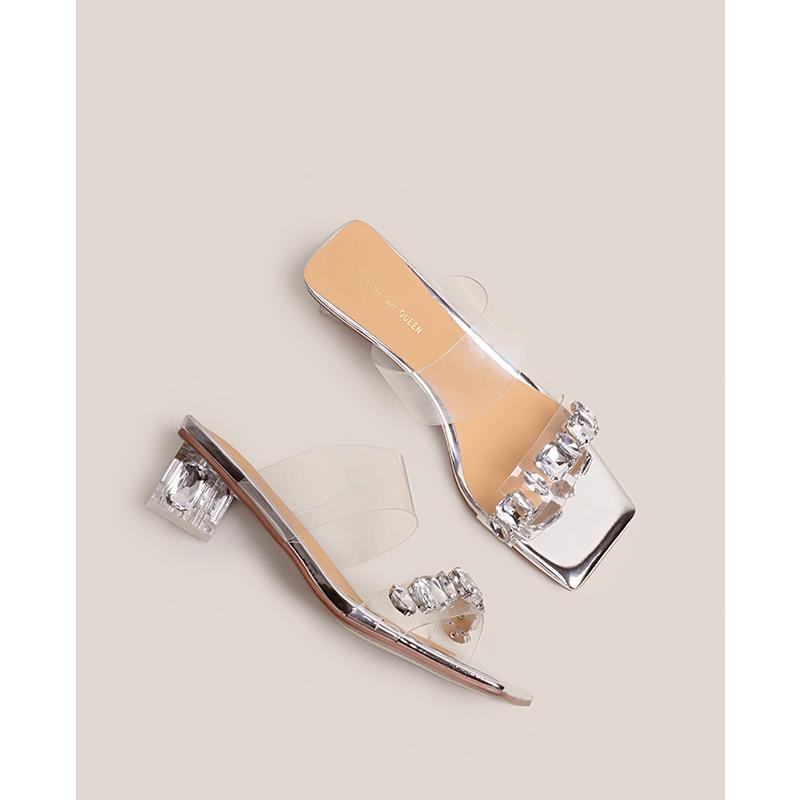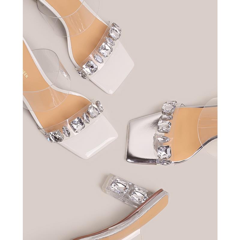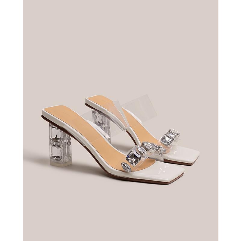 【鞋匠女王×精致水钻】透明水晶跟凉鞋女中跟方头凉拖气质高跟鞋