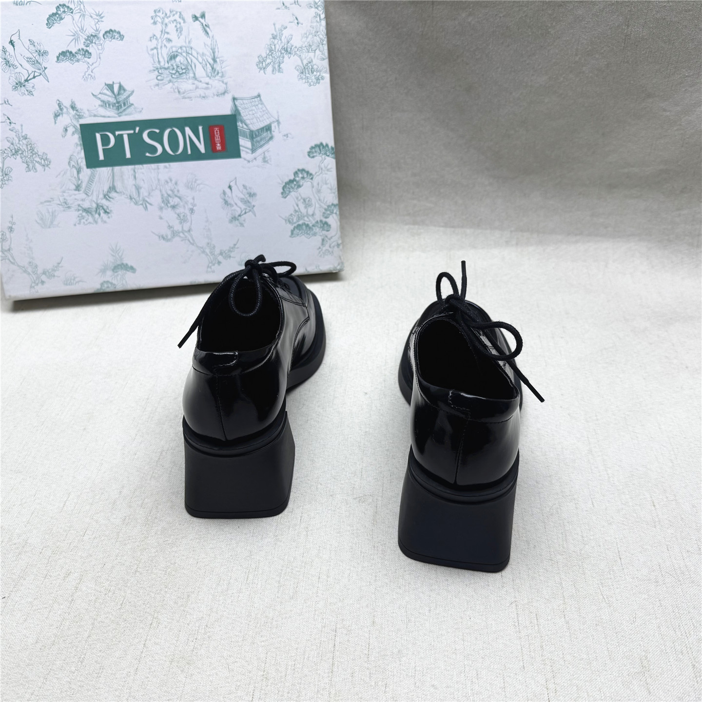 PT'SON/百田森百搭粗跟圆头时装鞋女秋新款真皮交叉绑带深口单鞋