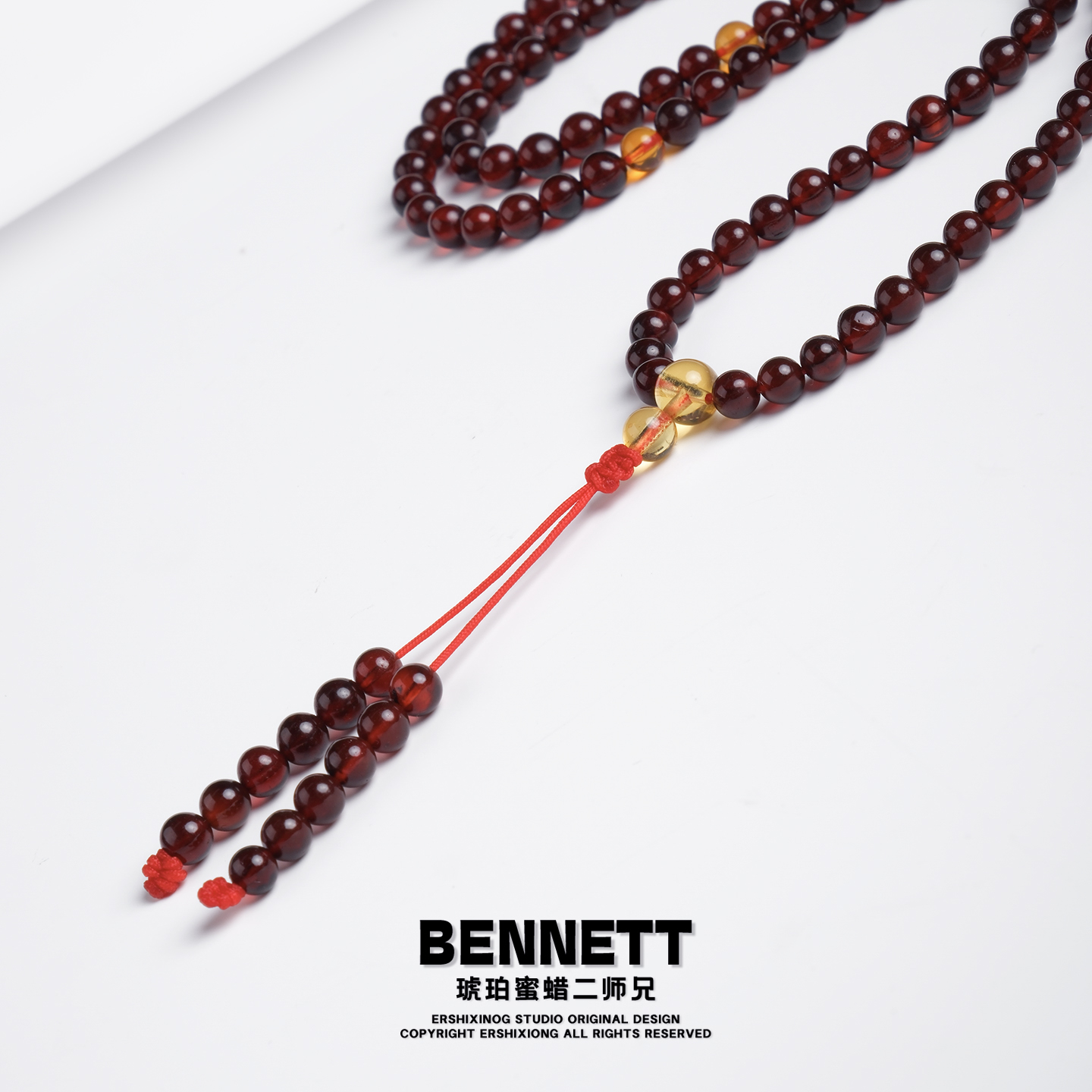 收藏级天然非烤色真品血珀手串牛血红血琥珀手链108佛珠5mm