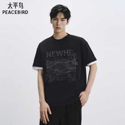 【重磅】太平鸟男装纯色印花短袖T恤25夏新款美式复古黑色体恤衫S