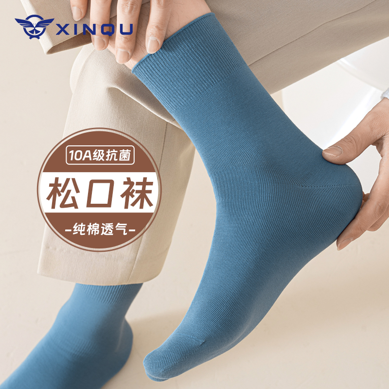 纯棉松口袜子男秋冬脚肿不勒腿宽松中长筒防臭吸汗老年人宽口棉袜