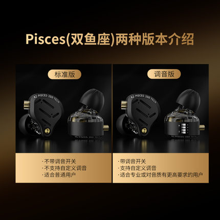 KZ- 双鱼座 Pisces 优化双单元动圈树立HiFi音质标杆可插线耳机