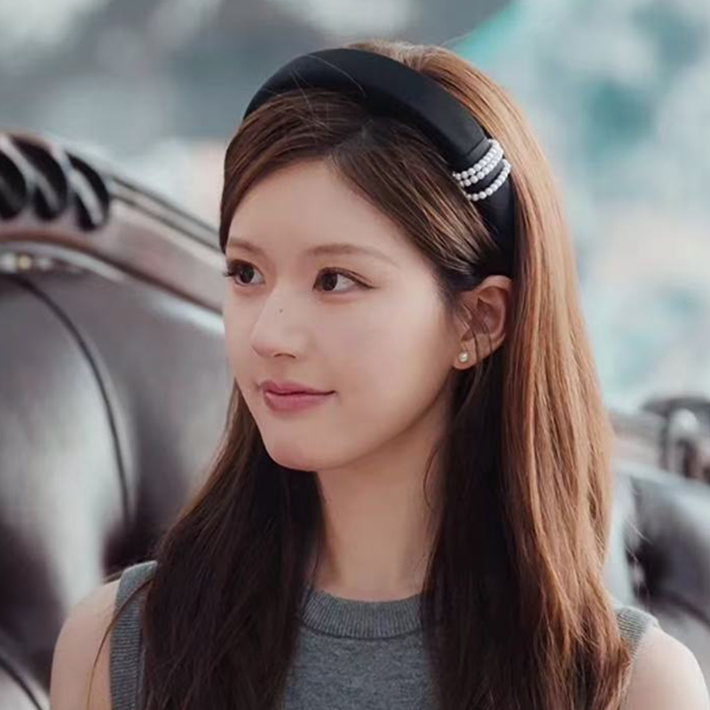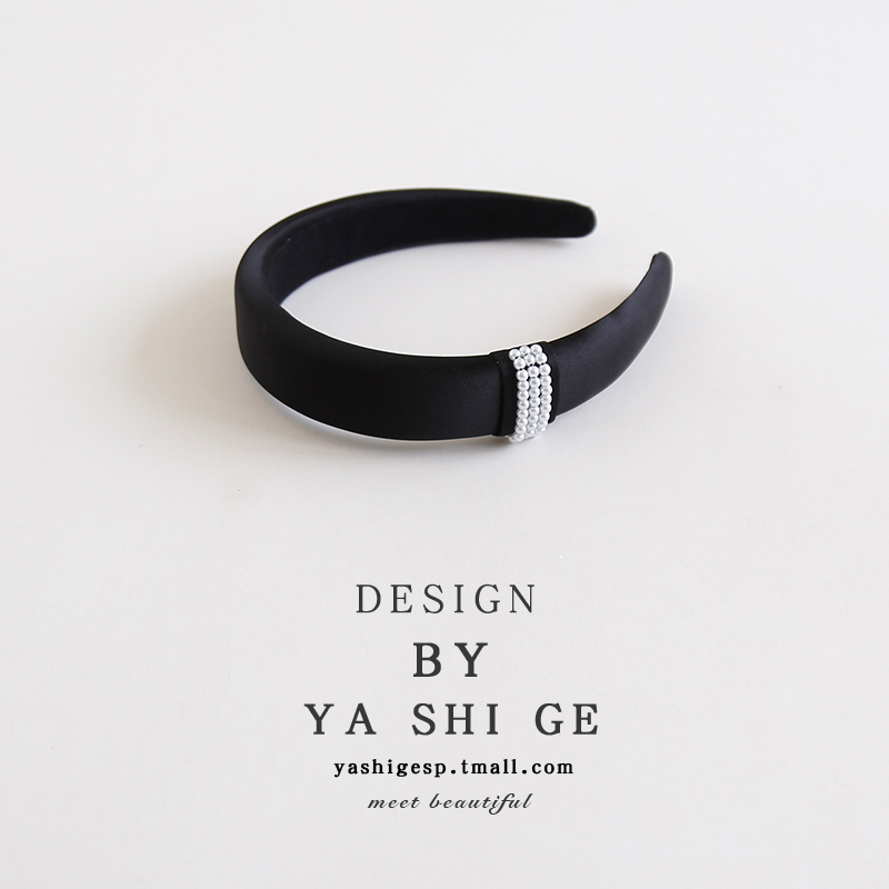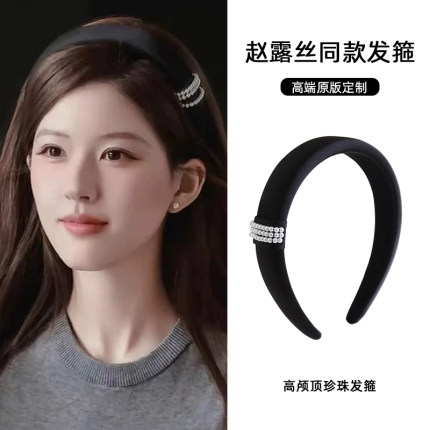赵露思同款发饰简约宽版发箍手工串珠黑色高颅顶头箍气质时尚发卡