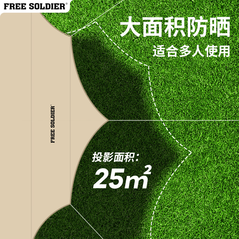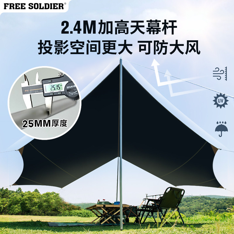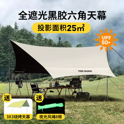 自由兵天幕帐篷黑胶蝶形八角户外