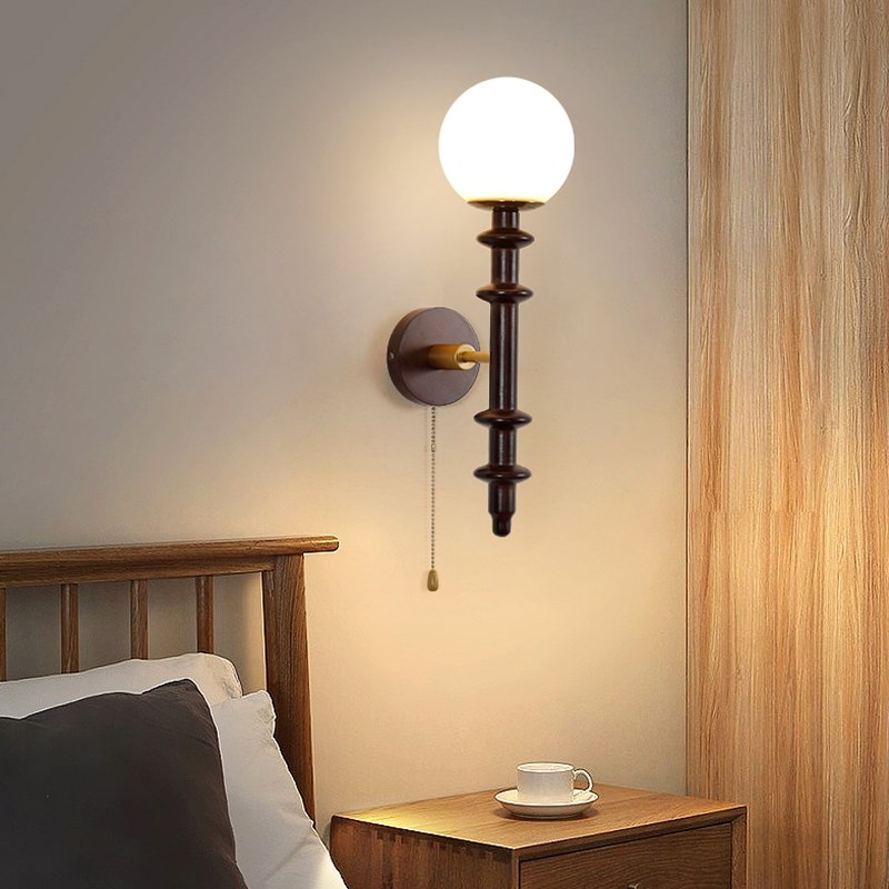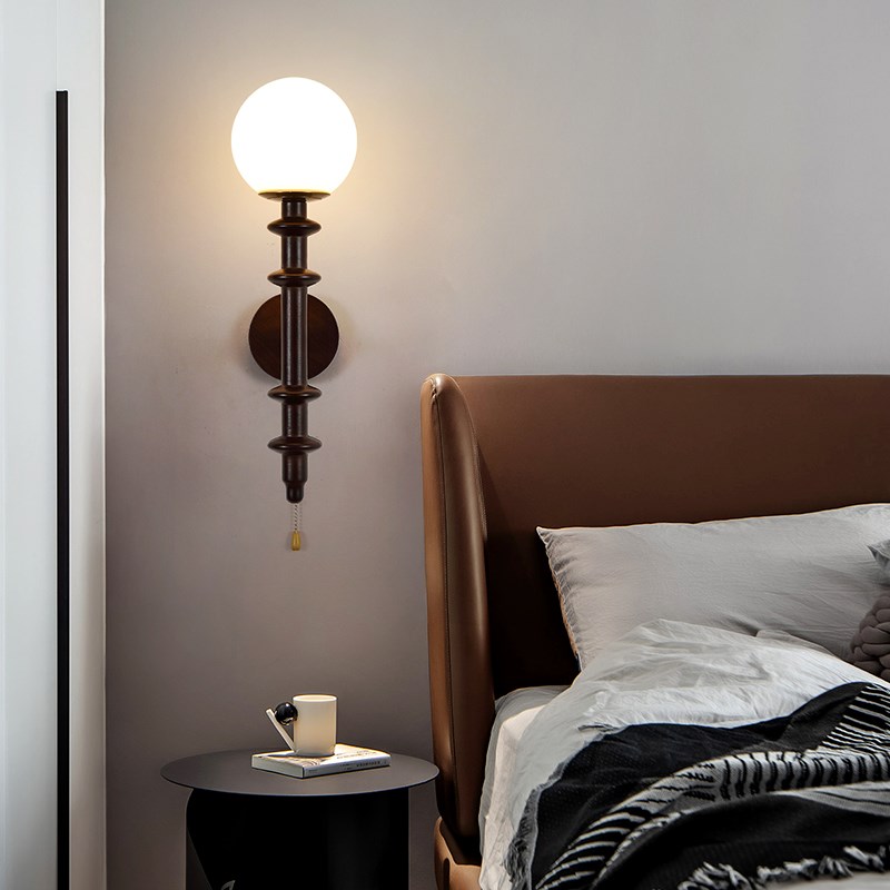 新中式壁灯中古别墅墙壁氛围灯复古胡桃木色卧Q室床头创意装饰灯